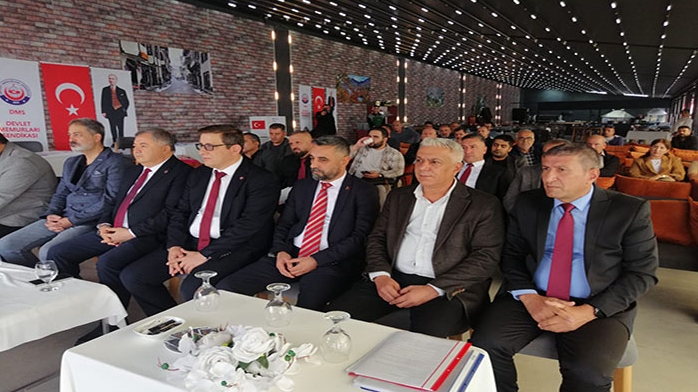 DMS Devlet Memurları Bölge Başkanlığı Şube seçimi 2.Genel kurulu Yapıldı. Melid RestoranCafe'de gerçekleştirilen Kongreye Ankara Genel Merkezden Başkan Tuncay Cengiz ve Başkan Yardımcısı Ahmet Sağan İle Bölge Başkanı ve Başkan adayı Ruhi Arslanboğa ve üyelerin Katılımı ile gerçekleştirildi. Kongre saygı duruşu ve İstiklal Marşının okunması ile Oluşturulan Divanın yönetmesi ile start aldı. İlk Konuşmayı Genel Başkan Tuncay Cengiz yaptı. Konuşmasına Tüm Hazirun Hepiniz Kongremize hoş geldiniz diyerek başladığı konuşmasında, Sendikamızın büyümesinde Türkiye'nin 3. Büyük Sendikası olmamızı sağlayan bu mücadelemiz Emeği geçen herkese teşekkür ediyorum. Çabalar sonucu birleşme ile geçen Mayıs adında 20655 olan üye sayımız birleşme sonucu verilen mücadele ile sayımız 23000 üyeye ulaştı. Ülkemizin bulunduğu durum hepinize Malum.! Enfelesyon ve Gelir adaletsizliğinden en çok etkilenen kesimin başında biz Memurlar gelmekteyiz. Memurun ne kadar zor durumda olduğu ortada.! Yapılan araştırmalarda aclık sınırı 90.000 TL civarı en az seviye 27.000 TL Bizim araştırmalarım ise 22.000 TL civarında. Yoksulluk sınırı ile karşılaştırdığımızda Memur Maaşı 55.000 TL ortalama, aradaki fark ortada.! Bu nedenle Memur ve emeklinin aradaki bu farkının kaldırılması mücadelemiz birinci önceliğimizdir. Bugüne kadar bizim 8 sözleşmemize Memur Sen katıldı. İlginç olanı bizi iyi temsil etmedikleri ortada.! Attıkları imza ile Memurlerın sıkıntısını devam etmesini sağladılar. Bunun yanında Devletin açıkladığı Milli gelirden alacağımız pay 68.000 Dolar olması gerekirken 17. 000 Dolar alıyorsak, geriye almamız gereken Pay nerede.? TÜİK ten aldığımız %20 lik pay olması gerekirken alınan %4 pay arada uçurum var. Aradaki fark nerede.? Avrupa da Gelir adaletsizliğinden 1. Sıradayız.! Toplu sözleşmeler TÜİK in enflasyon açıklamasına bağlı.Açıklamalarda Ekonomi büyüyor bu bizi mutlu ediyor:Amma Memurun Maaşı hep küçülüyor.! Buda bizi üzüyor. Emekli olan Memurun Maaşı 23.000 TL ye düşüyor.! Bırak ev almayı Hobi bahçesi bile alamıyoruz. Bizim mücadelemiz yetki almak Bu mücadelemizden asla vaz geçmeyip,taviz vermeyeceğiz.İnşallah Yetkiyi alıp aradaki Farkı kapatmak için var gücümüzle uğraş vereceğiz. Bu mücadelemizden siz değerli üyelerimize sorumluluk düşüyor. Üye sayımızı artırmaya hep birlikte devam edeceğiz 1 üye deyip geçmeyeceğiz !Üye sayısındaki artışımız bizi inşallah yetki masasına oturtacak. Bizim mücadelemiz Ailemizi değil Toplumumuz ilgilendiriyor. Avrupa'daki Panik atakta Türkiye 2. Sırada çok ciddi bir durum söz konusu. Sağlam yapı oluşturmak istiyorsak Ülkeye karşı sorumluluğumuz yerine getirmeliyiz. Bu genel Kurulun Hayırlı olmasını temenni ediyor yeni seçilen Başkan ve yönetim kuruluna başarılar diliyorum dedi. Genel Başkandan sonra kürsüye gelen Bölge Başkanı ve Başkan adayı Ruhi Arslanboğa yaptığı konuşmada Sayın Genel Başkanım,